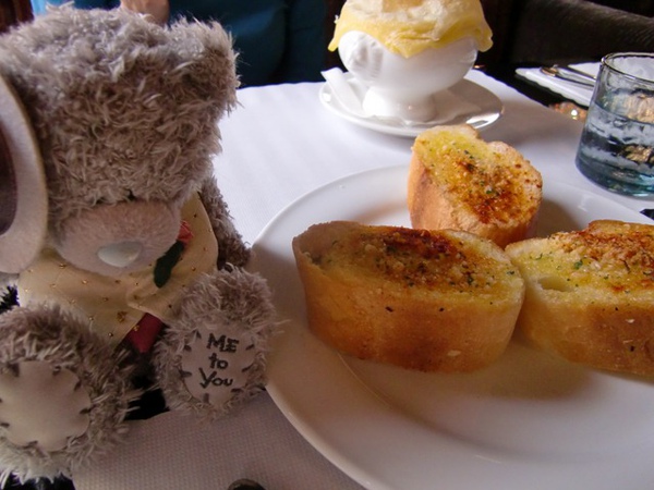 這就是大家推薦的香蒜羊肩排,看起來好好吃喔~我們口水都快留下來啦!最後,我們三個人為了都品嚐到大家推薦的美味,於是點了菜單上面所說的其中三個主廚套餐,並加價升級酥皮濃湯套餐~齁!你們是不是和紳士熊一樣很期待套餐的來到呢?快點轉動你的滑鼠,繼續看下去吧!