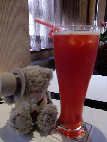 紳士熊點的是冰的有機草莓覆盆子果粒茶,店長和我們說,這茶富含豐富礦物質和維生素,可以補充維他命A、B、E(都是女生需要的元素,可以養顏美容),不論冷或熱,在大吃一頓後,來一杯這飲料,真的可以去除食物多餘的油膩感~下次在大魚大肉後,紳士熊一定要再來上一杯啊!